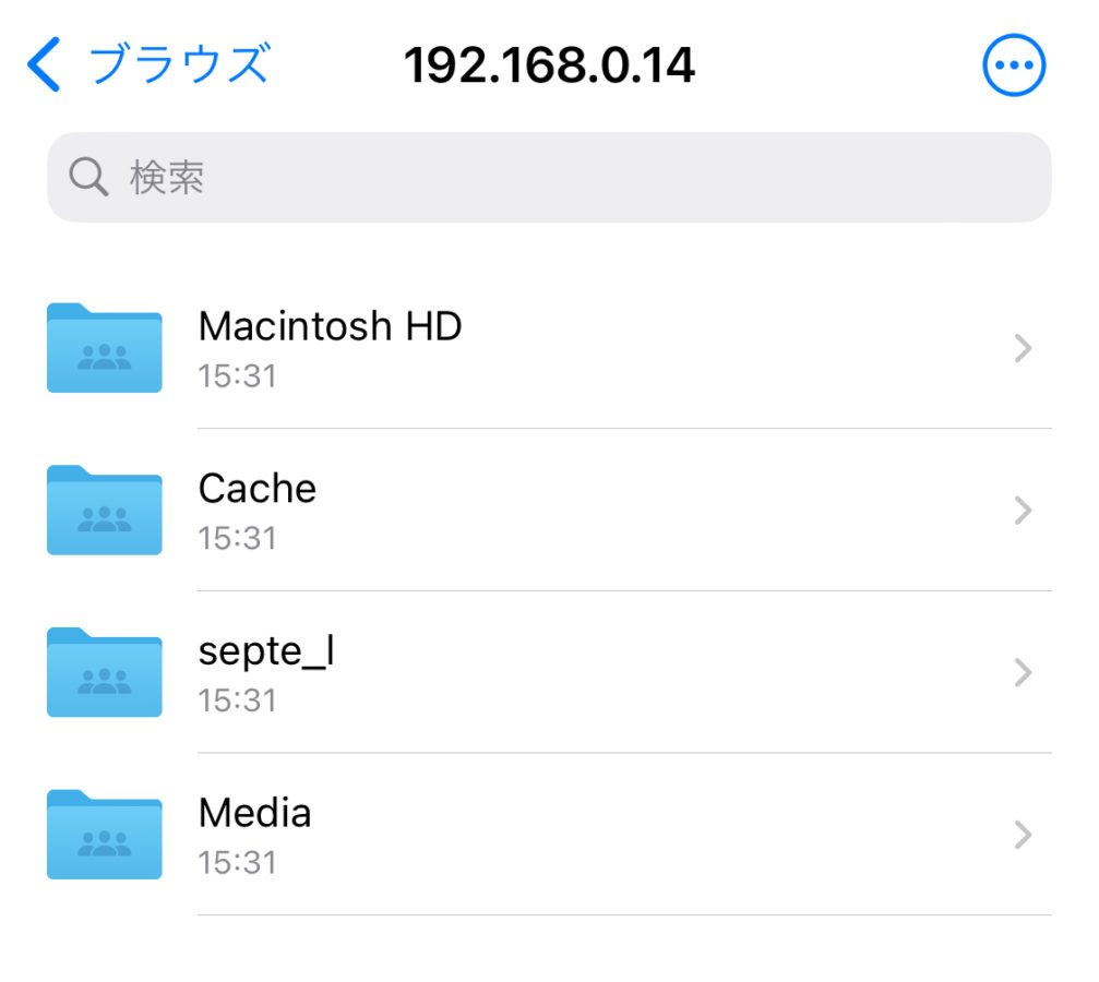 VPN接続中はLAN内にいるのと同等なので、ファイルApp→サーバへ接続からMacminiのローカルIPを打てばSMBアクセスが出来る。