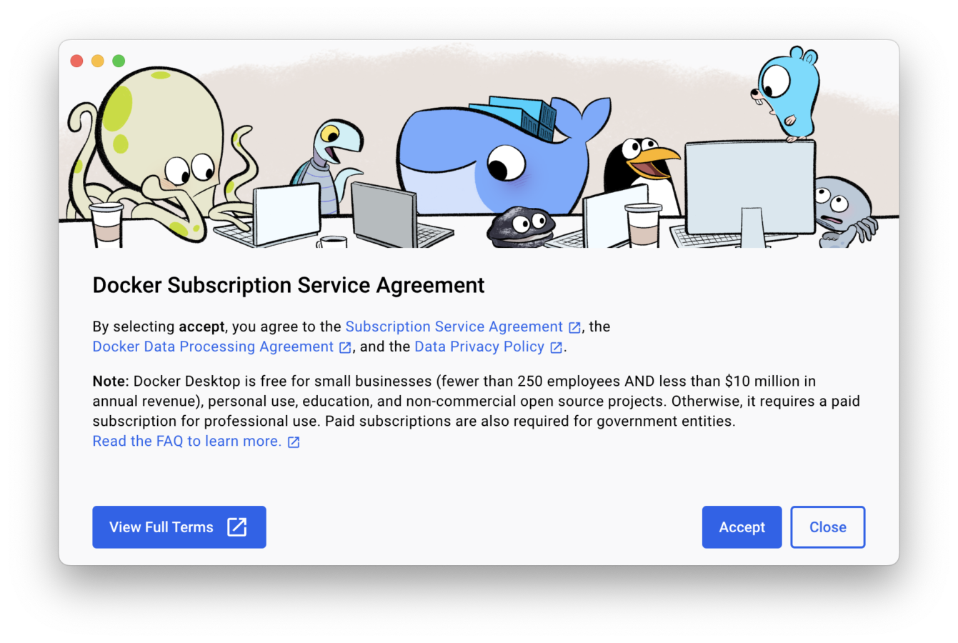 終わったらDockerへ戻りサインイン。ダッシュボードが表示されれば下準備完了。