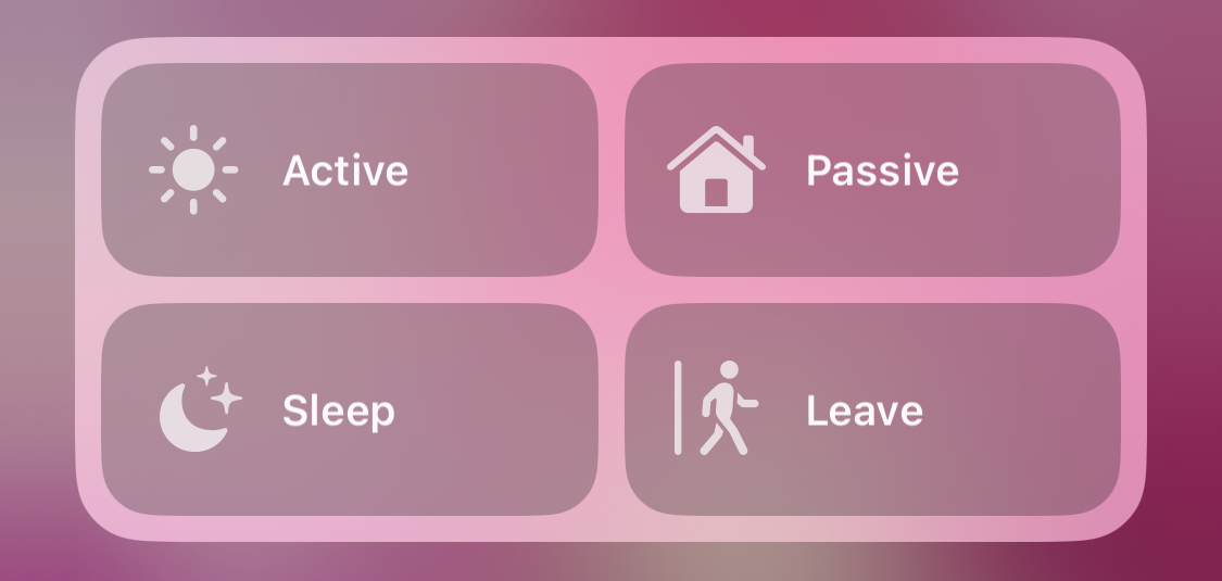 私用外出時であれば集中モードActive+HomekitシーンLeave、自宅で昼寝であれば集中モードPassive+HomeKitシーンSleep、といったように組み合わせ次第で結構細かく対応できる。