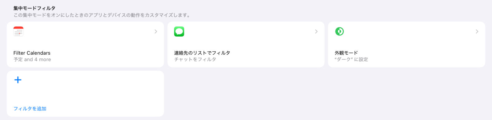 Mac版でのライト/ダークモードを含め、集中モードフィルタの適用範囲が増えていくと更にまとめて制御しやすくなる。