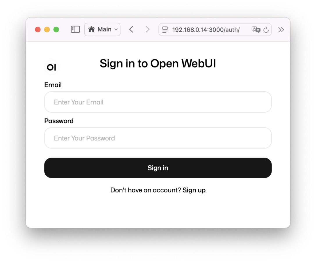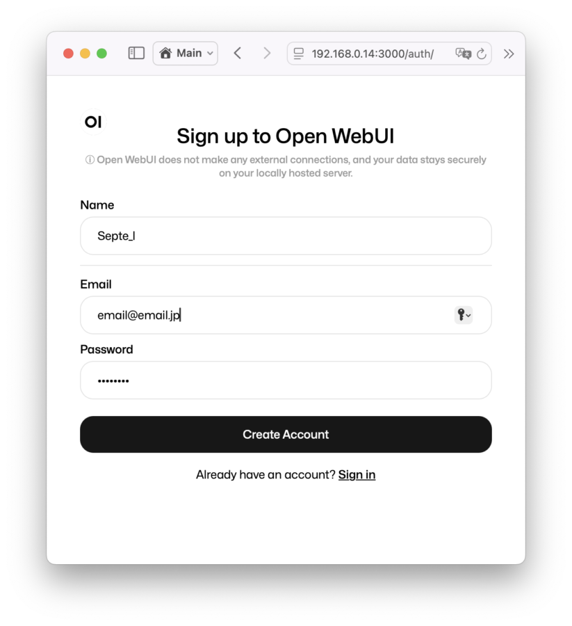 DockerでWebUIのコンテナを起動し、localhostの3000番ポートにアクセス。(http://localhost:3000)