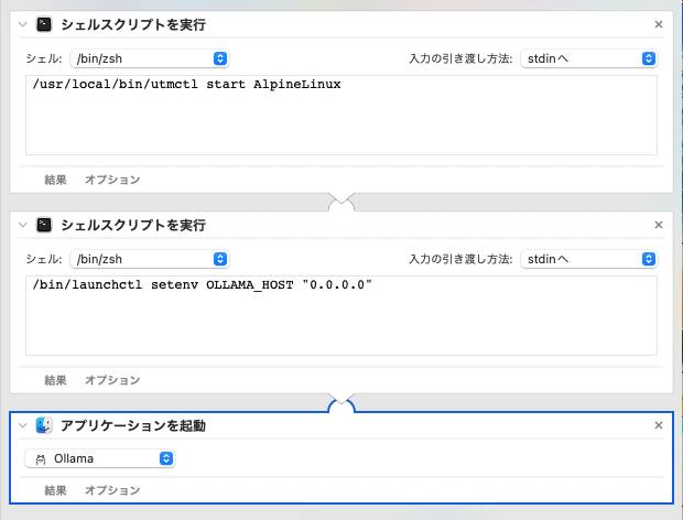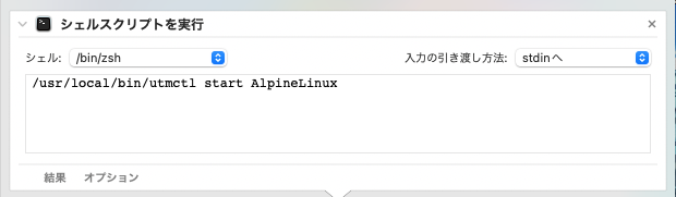 utmctlのパスと仮想マシンの名前が揃ったらAutomatorを起動。