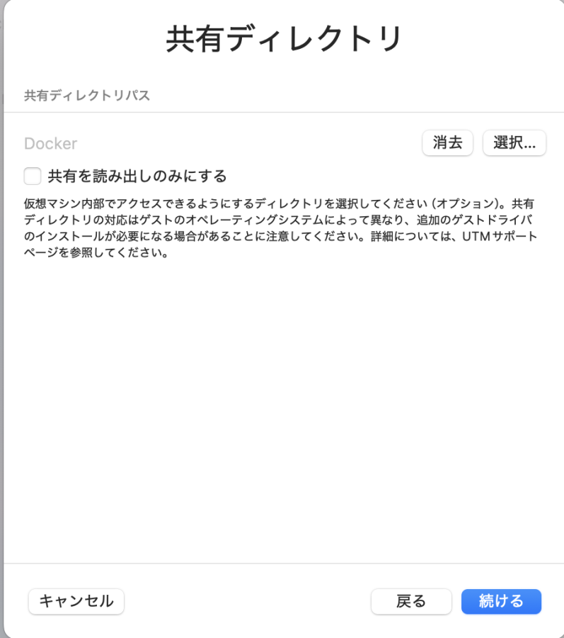 あとで覗ける共有ディレクトリが必要であれば設定、完了したら仮想マシン設定を開く。