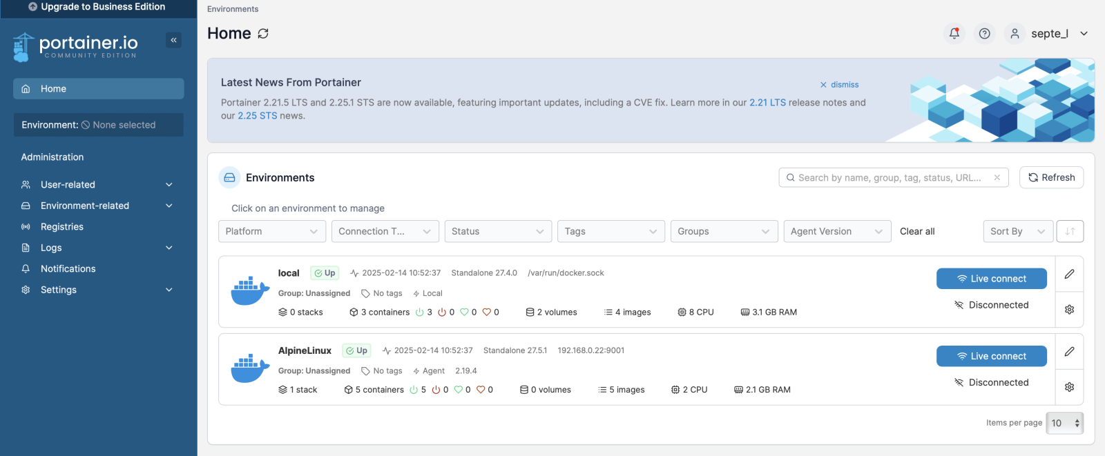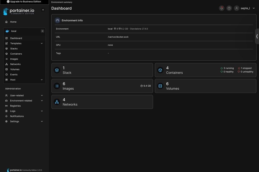 これに伴い2つのDockerを管理する必要が出てきたが、これを解決したのがPortainer。2つのDockerを1つのWebUIで管理可能だった。