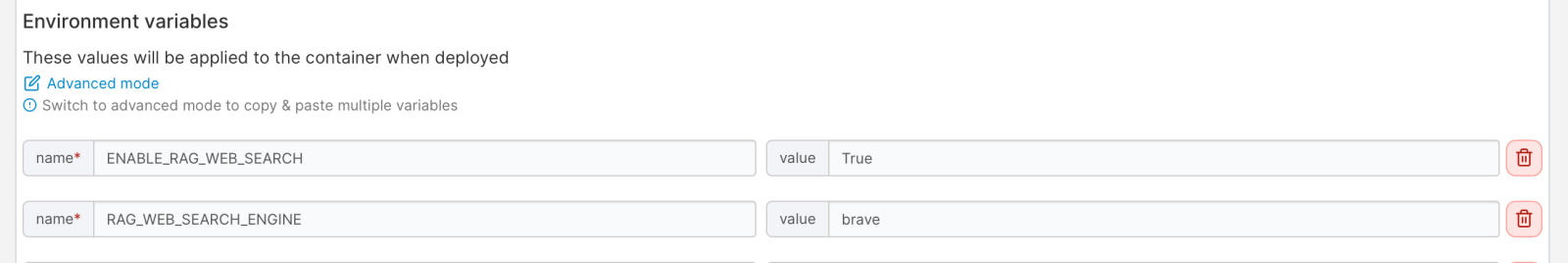コンテナの詳細からDuplicate/Editを選ぶと、最下部で環境変数を追加/編集できてしまう。