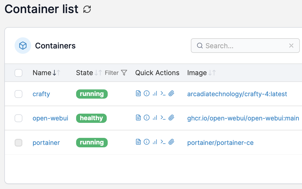 Ollama用にOpen WebUIと、マイクラサーバーであるCrafty。CraftyはWebUIでBE/Java両方のサーバーを自由自在に立てられるので、レンタルサーバー的な設定と運用が可能になる。